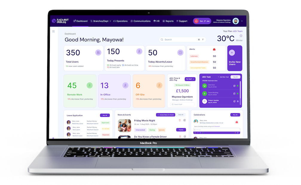 When we say “setup your company within a flash,” we mean it. Our platform is designed for rapid deployment, intuitive configuration, and immediate value generation. Whether you’re a startup establishing your first formal processes or an established enterprise seeking to modernize your operations, Radiant Digilog provides the digital infrastructure to make it happen quickly and effectively.